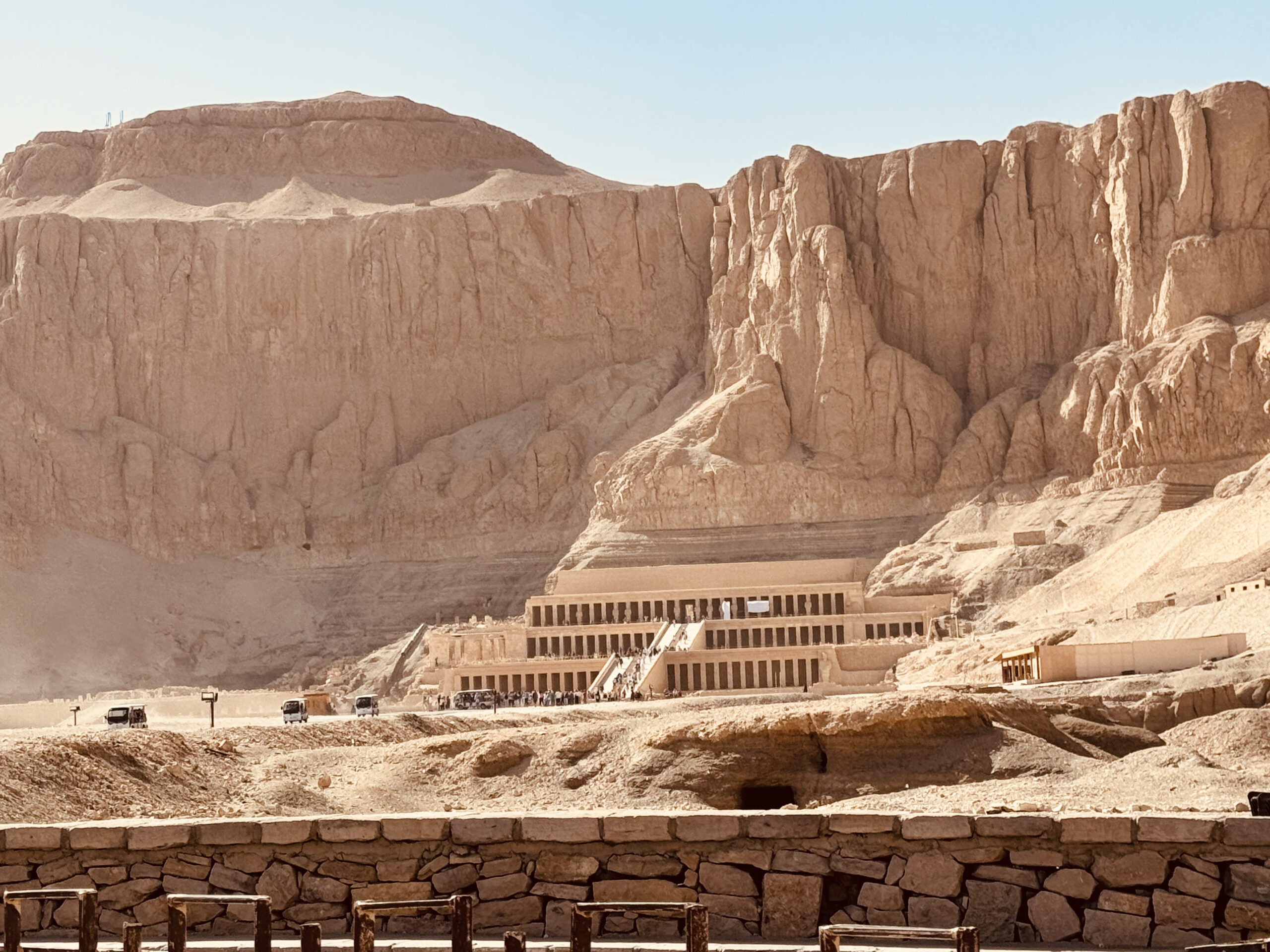 Marvel at the stunning terraced temple of Queen Hatshepsut, one of Egypt’s most powerful female pharaohs. Built into the cliffs of Deir el-Bahari, the temple features grand colonnades, painted reliefs, and chapels dedicated to gods like Amun and Hathor. Its symmetry and location against the rugged limestone cliffs make it one of the most striking architectural achievements of Ancient Egypt.